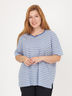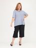2 футболки: однотонная и в полоску. Обе с вырезом-сердечком. Прямой крой с боковыми разрезами. Короткие рукава. Длина ок.70 см. Параметры фотомодели: рост 172 см, российский размер 48.