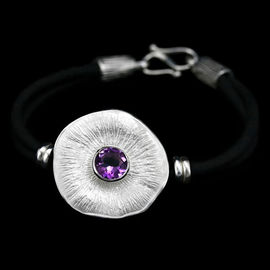 Браслет на шелковом двойном черном шнурке с аметистом Ainsi