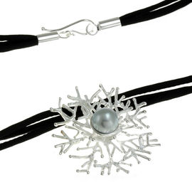 Кулон с жемчугом Ainsi, на толстом шелковом шнуре
