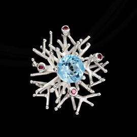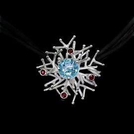 Кулон с голубым топазом Ainsi "Кораллы", на шелковом трехслойном шнурке черного цвета
