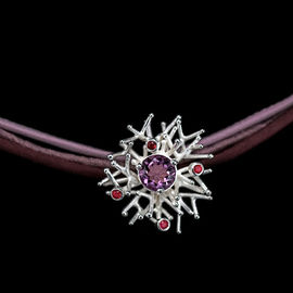 Кулон с аметистом Ainsi "Кораллы", на шелковом трехслойном шнурке