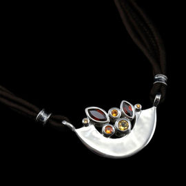 Кулон с полудрагоценными камнями Ainsi "Полумесяц", на четырехслойном шелковом шнуре цвета шоколад
