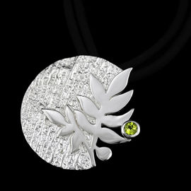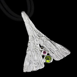 Кулон с хризолитом и сапфирами Ainsi "Палочка", на черном шелковом шнуре