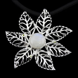Кулон с сапфиром Ainsi "Четырехлистник", на шелковом двойном шнуре черного цвета