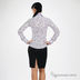 Светло-сиреневая рубашка в цветочный орнамент со светло-сиреневой отделкой воротничка и манжет.