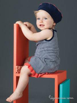 Сарафан Angel dear для девочки, цвет синий / слоновая кость