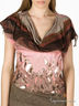 Футболка прямого кроя из приятного на ощупь трикотажа. Воротник-хомут. Короткие цельнокроеные рукава. На плечах регулируемые завязки. Спереди золотая аппликация.