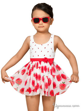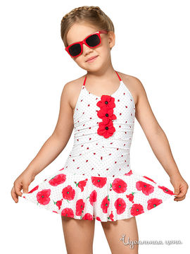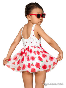 Купальник для девочек слитный Arina, цвет белый , принт 'алые маки'