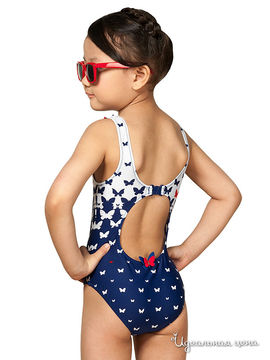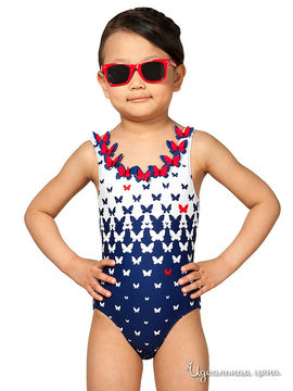 Купальник для девочек слитный Arina, цвет бело-синий , принт 'миллион мотыльков'