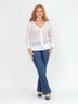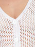 Ажурный кардиган с V-образным вырезом и застежкой на пуговицы. Эффект вязки крючком. Прямой силуэт, с длинными рукавами и краями в рубчик. Длина ок.60 см. Параметры фотомодели: рост 172 см, российский размер 48.