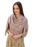 Женский бактус из шерстяной пряжи. Сбоку украшен ажурной вязкой и жемчужными бусинами. Размер бактуса 65*220 см.