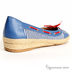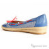 Синие кожаные балетки от Betsy дополнены текстильными вставками, украшенными рисунком в полоску. По бокам - крупные швы со сквозными заклепками. Внутренняя часть оформлена кожей. Модель декорирована модным в этом сезоне плетением.