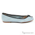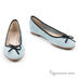 Чудесные балетки из нубука небесно - голубого цвета на тонкой легкой подошве, края окантованы контрастной лентой, мысок. декорирован бантиком. Без подкладки, стелька выполнена из натуральной кожи.