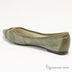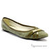 Элегантные балетки с заостренными мысками на небольшом каблучке, высота которого ок. 1 см. Материал верха: велюр (замша) цвета милитари (хаки). Мысок украшен тонкими ремешками из кожи с металлической пряжкой. Внутри - кожа. Подошва - полиуретан.
