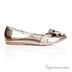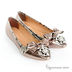 Нарядные балетки, выполненные из кожи необычного оловянного цвета. Закрытый носок украшен большим бантом, декоративными камнями и кристаллами. Подошва проклеена, внутри ортопедическая стелька. Дизайн предполагает вставки из кожи, отделанной «под змею». Пара выглядит роскошно и очень торжественно.