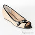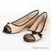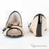 Женские балетки из натуральной кожи, комбинированной лаком. Скрытая платформа. Перфорация по всему изделию. Мыс открыт и декорирован бантом.