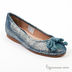 Аккуратная, хорошо гнущаяся модель из мягкой кожи украшена декоративным бантиком из каната на мыске. Серебристо-синяя кожа выделана под чешую.