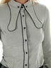 Приталенный батник, рубашечного покроя, из мягкого трикотажа джерси. Застежка на пуговицы. Воротник необычной формы поможет создать новые образы. Отворачивающиеся манжеты позволяют регулировать длину рукава.