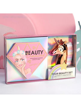 Набор: запечённый хайлайтер и кисть для макияжа Cosmic Unicorn, Beauty Fox