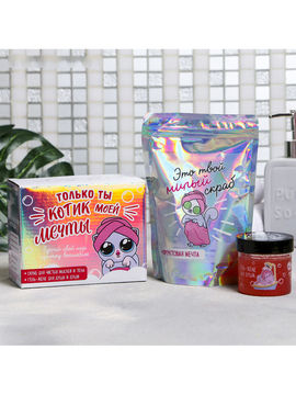 Набор "Только ты котик моей мечты": мерцающий скраб для тела, гель-желе для душа, Beauty Fox