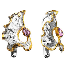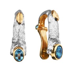 Серьги с сапфиром Beavers, серебряные с позолотой