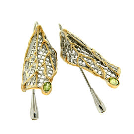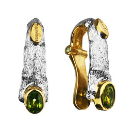 Серьги с хризолитом Beavers, серебряные с позолотой