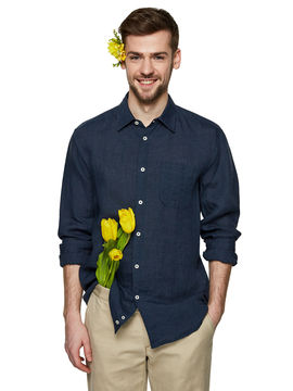 Рубашка United Colors Of Benetton, цвет белый, темно-синий