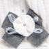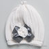 Теплая полушерстяная шапочка украшена тканевыми декоративными элементами и стразами.