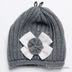 Теплая полушерстяная шапочка украшена тканевыми декоративными элементами и стразами.