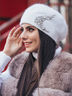 Одинарный берет с подворотом, декорирован фигурной россыпью камней.