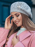 Берет из полушерстяной пряжи плотной вязки, декорирован брошью и жемчужной россыпью.