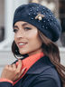 Берет из полушерстяной пряжи плотной вязки, декорирован брошью и жемчужной россыпью.