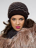 Яркий полушерстяной берет с добавлением ангоры и кашемира украшен контрастными полосками. Согреет Вас в любую погоду.
