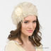 Мягкий и теплый берет из вязаного полотна декорирован ажурной вязкой и атласными цветами с перьями. Подходит для романтичных и утонченных особ, привыкших одеваться с лоском.