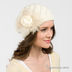 Мягкий и теплый берет из вязаного полотна декорирован ажурной вязкой и атласными цветами с перьями. Подходит для романтичных и утонченных особ, привыкших одеваться с лоском.