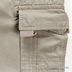 Модель свободного кроя застегивается на молнию и застежку-крючок. К поясу пришиты петли для ремня, вставлен тканевый ремешок. Два передних кармана, два задних кармана на кнопке, два боковых кармана на кнопках располагаются на брючинах. Декоративная нашивка и принт на правом заднем кармане.