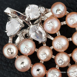 Брошь-кулон Biruza ЖЕМЧУГ женская, вставка жемчуг / кристалл Svarovski