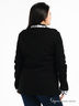 Оригинальный блейзер из плотного трикотажа. Воротник-стойка. Застежка спереди на молнию. Длинные прямые рукава с манжетами. Два прорезных кармана с листочкой. Ворот, манжеты и листочки дополнены вставками из другого материала.