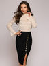 Блузка цвета ванильного мороженого выполнена из изысканного кружева, поэтому подойдет даже для самых важных событий. Обратите внимание на детали: длинные расклешенные рукава и воротник-стойку.