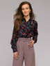 Блуза черная с романтичным цветочным принтом — интересная и смелая вариация классической деловой блузы.