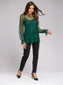 Блузка роскошного изумрудного оттенка дополнена отделкой кружевом и пышными рукавами. Сочетайте вместе с классическими брюками и получите нарядный образ.