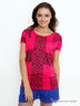 Стильная блузка с короткими рукавами и округлым вырезом горловины. Модель выполнена в приятной расцветке. Отличный вариант для повседневного использования.
