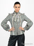 Стильная женская блузка оригинального кроя. Застежка на пуговицы. Изделие декорировано рюшами и лентами.
