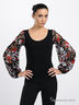 Трикотажная блуза прямого покроя из приятного на ощупь материала. Широкая круглая горловина. Широкие длинные рукава из эластичного сетчатого материала присобраны на манжеты.