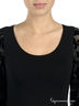 Блуза с округлым вырезом горловины привлекает к себе внимание за счет объемных прозрачных рукавов.