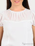 Детали: круглый вырез горловины с застежкой на пуговице по спинке, оригинальная плиссировка по вырезу горловины, рукава фонарики с резинкой отделанной рюшей отрезной лиф.