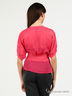 Детали: глубокий V-вырез, широкие короткие рукав с небольшой трикотажной манжетой на пуговице, изящный пояс из основного материала в комплекте.