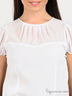 Элегантная блуза из приятного на ощупь материала. Округлый вырез горловины. Свободный силуэт. Короткие рукава слегка присборены. Застежка на пуговицу. Прекрасно дополнит пиджак или кардиган.