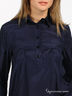 Стильная блуза насыщенного темно-синего цвета выполнена из сочетания шелка и хлопка, что придает ей легкость, шелковистость и элегантный лоск, но делает материал более простым в уходе и носким. Отложной воротник на стойке. На полочке планка-застежка на пуговицах. Длинные рукава с манжетами. Плечики и кокетка сзади декорированы защипами. Стильная и комфортная модель подойдет как для офиса, так и для отдыха.