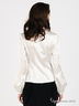 Детали: отложной воротник, застежка на пуговицы, длинные рукава, полочка декорирована складками